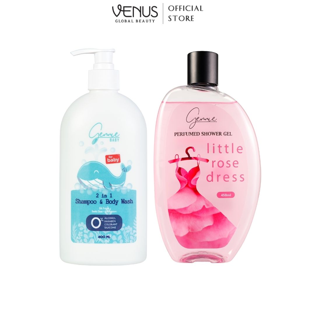 Tên sản phẩm: Bộ đôi Mẹ và Bé Sữa tắm Gennie Little Red Dress + Sữa tắm gội 2IN1 Gennie Baby 450ml - 400ml