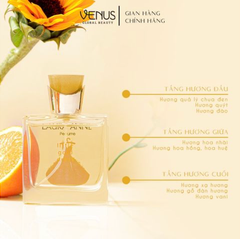 Mở đầu bằng Cam Bergamot và đào mọng nước, hương thơm bung tỏa sự tươi sáng, thanh mát nhưng vẫn ngọt nhẹ đầy nữ tính. Tiếp nối ở tầng hương giữa là sự hòa quyện của trái cây, hoa hồng và hoa cam, mang đến cảm giác mềm mại, trong trẻo và căng tràn sức sống như một đoá hoa vừa hé nở trong nắng sớm. Khi hương lắng xuống, hoắc hương, hương phấn và xạ hương tạo nên một lớp nền ấm áp, lưu luyến và thanh lịch. Tổng thể mùi hương gợi cảm giác ngọt dịu, nữ tính và cực kỳ thu hút, phù hợp cho những cô nàng yêu thích sự tinh tế mà vẫn nổi bật.