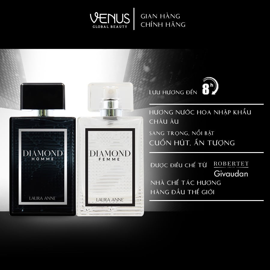 Diamond là đặc trưng của sự thanh lịch và tinh tế, với sức mạnh lưu hương tuyệt vời. Mẫu nước hoa tuyệt vời trên cả kỳ vọng này phù hợp sử dụng trong bất cứ thời gian nào, dù là văn phòng làm việc hay những buổi hẹn hò. Hãy khoác lên mình bộ quần áo ưa thích, xịt thêm vài giọt DIAMOND pour FEMME, bạn sẽ trông thật tuyệt vời và thu hút mọi ánh nhìn khi dạo phố hay trong những buổi tối hẹn hò cùng chàng.