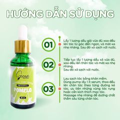 Bước 3: Lau sạch tóc bằng khăn mềm. Dùng pump lấy 1 ít serum, thoa đều lên chân tóc theo từng đường kẻ tóc, ưu tiên những vùng tóc rụng hoặc cần kích thích mọc tóc. Massage nhẹ nhàng để dưỡng chất thấm sâu từng chân tóc.