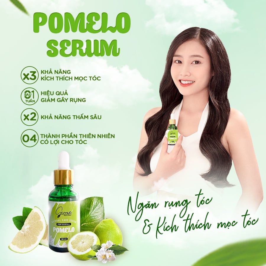 Serum Bưởi Gennie Natural Care với tinh dầu vỏ bưởi 100% thiên nhiên kết hợp cùng dầu dừa, dầu argan và dầu hạt chia, thấm sâu vào tóc và da đầu giúp nuôi dưỡng tóc sâu từ bên trong, ngăn rụng và kích thích mọc tóc, phục hồi và bảo vệ tóc trước các tác nhân gây khô xơ và hư tổn.
